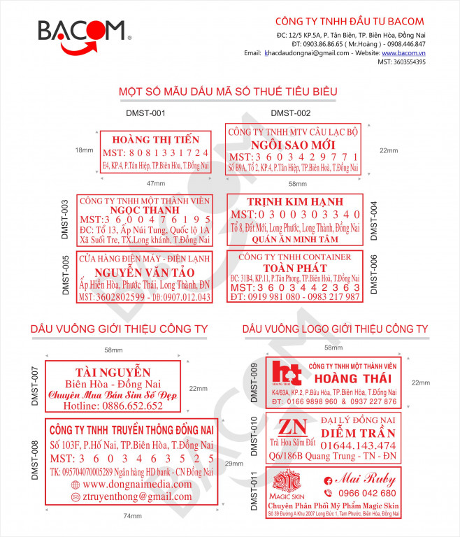 BACOM nhận khắc dấu tròn, dấu vuông mã số thuế, dấu cửa hàng, dấu địa chỉ